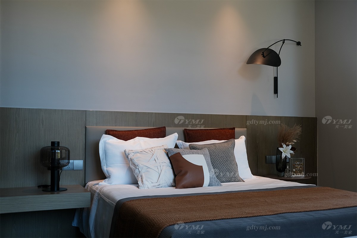 項目介紹:本案位于海南度假旅游勝地興隆太陽河,定位為旅游度假村別墅項目,地理位置絕佳,此次別墅樣板間項目共分A、B、C三個戶型房間,跟之前做過的會所項目類似,配合度假村別墅整體呈現代時尚簡約的裝修風格,家具設計主要以時下流行的意式現代簡約風格為設計理念,以白色、胡桃木色、深色為主色調,以時尚軟裝飾品為點綴,整體給人感覺簡約而不失舒適和精致,實木原木色的運用,突出了家具的整體質感,隨處可見的綠植的點綴搭配,代表著清新、環保和希望,不同的房間戶型,感覺也會不同,這樣可以滿足每位旅客的不同需求,深受客戶肯定。