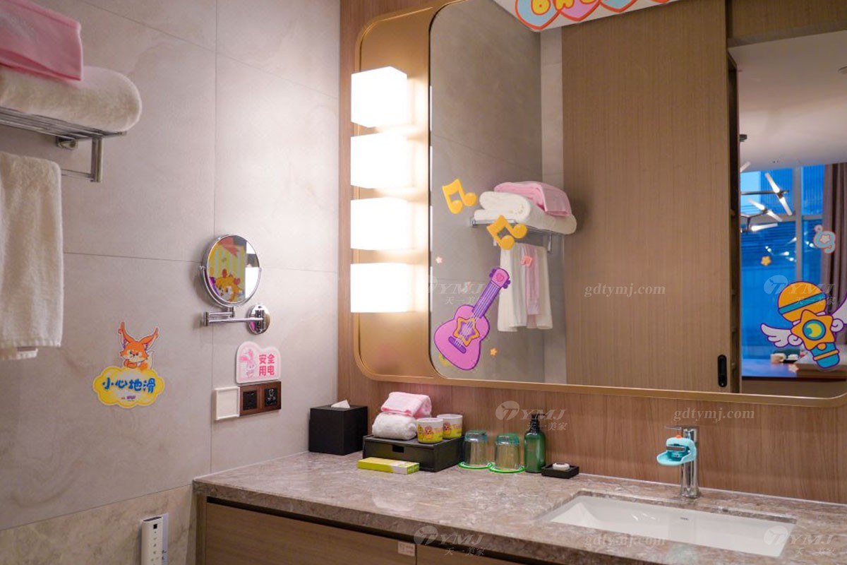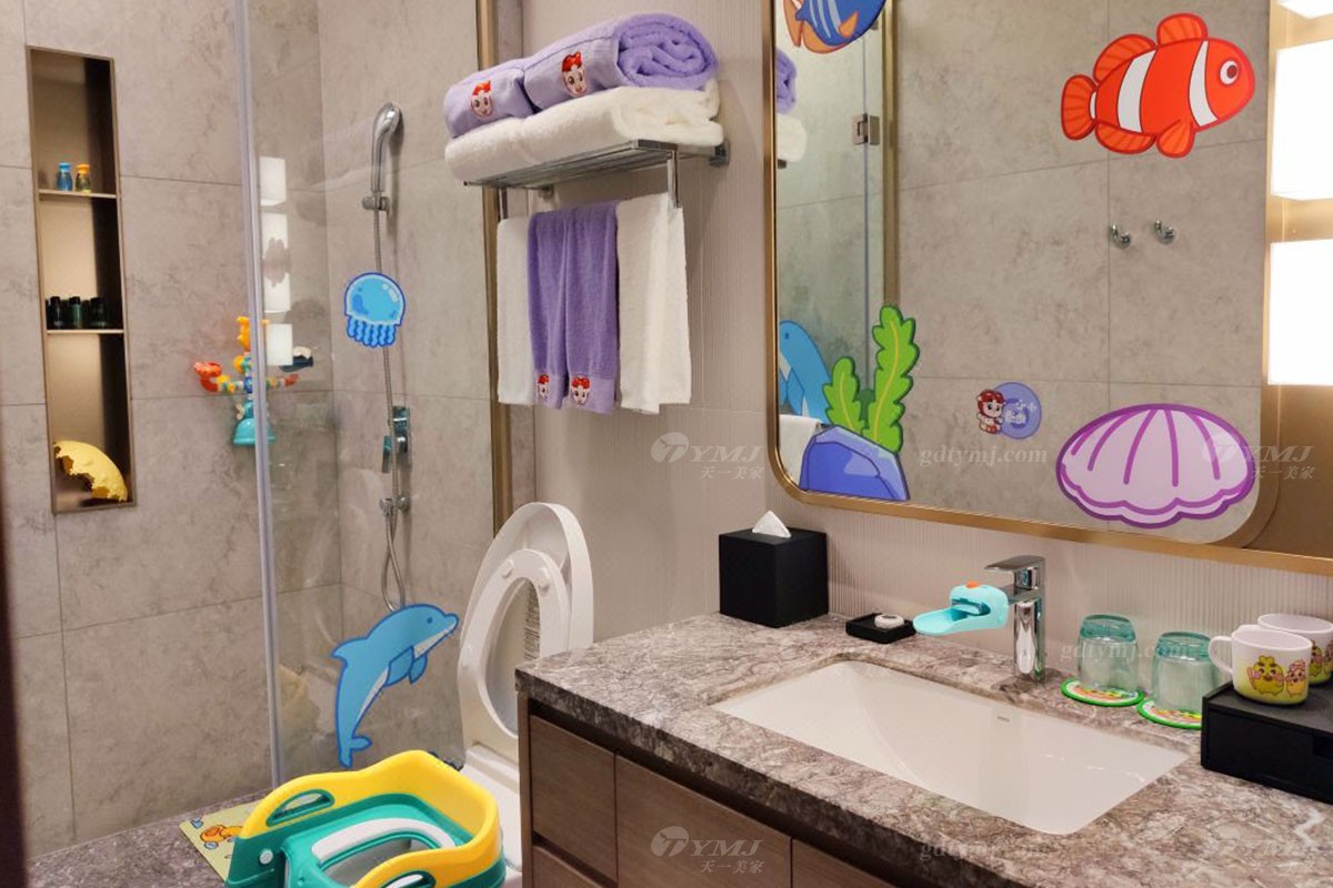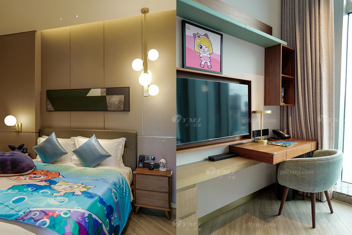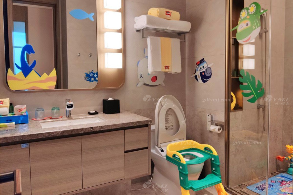 溫馨有趣的主題親子房分別以小朋友非常喜愛的兒童動畫片《超級飛俠》、《豬豬俠》、《巴啦啦小魔仙》等系列為主題而進行精心設計打造,無論是客廳、臥室,還是洗手間的布置裝飾,隨處都可見到主題動畫里活潑有趣勇敢的主角們的元素,主題親子房還配備了相關的兒童帳篷、玩偶、小滑梯,小動物坐凳等等,通過這些透露著愛與細致、并融入了主題元素的活動家具軟裝的點綴裝飾,讓房間內(nèi)瞬間充滿活力與趣味性,營造出一個既溫馨自然又充滿趣味與想象力、大人和小孩都能樂享其中的美好空間。