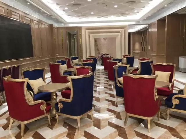 項目介紹:藍色永遠是高貴氣質最好的代名詞,空間以藍色搭配熱情的大紅為主色調,點綴金色臺燈和茶幾、單人椅、靠墊等裝點,雍容華貴的風格立刻展現在眼前,紅色與藍色的變奏繁簡有度,置身于此無疑享受了是視覺的盛宴。