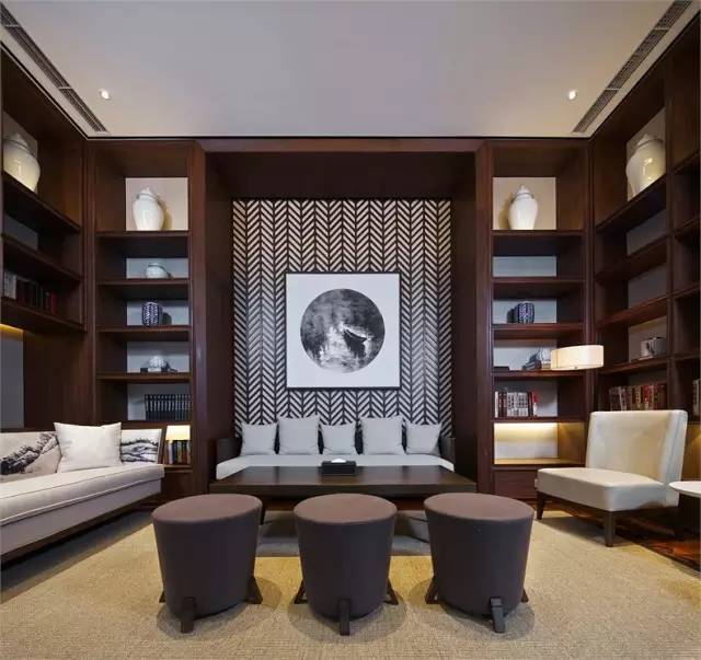 古人素來講究“天人合一”,順應自然。老子曰:“人法地,地法天、天法道,道法自然?!眱烧呓栽迫伺c自然的相通性,凡事應順乎自然規律,達到人與自然的和諧。在書吧的設計中,設計師以極自然的材質搭配,盡顯柔和高雅之感,內斂而含蓄,一切看似漫不經心、隨意簡約,卻盡顯波光靈動之美。