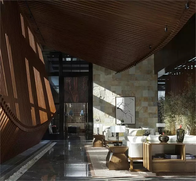 設計師充分挖掘東方國學文化,提取元素用于設計中,用有變化不規則的形體,產生豐富的意味。形成了一種洗盡鉛華,歷經滄桑沉淀后的東方意境。