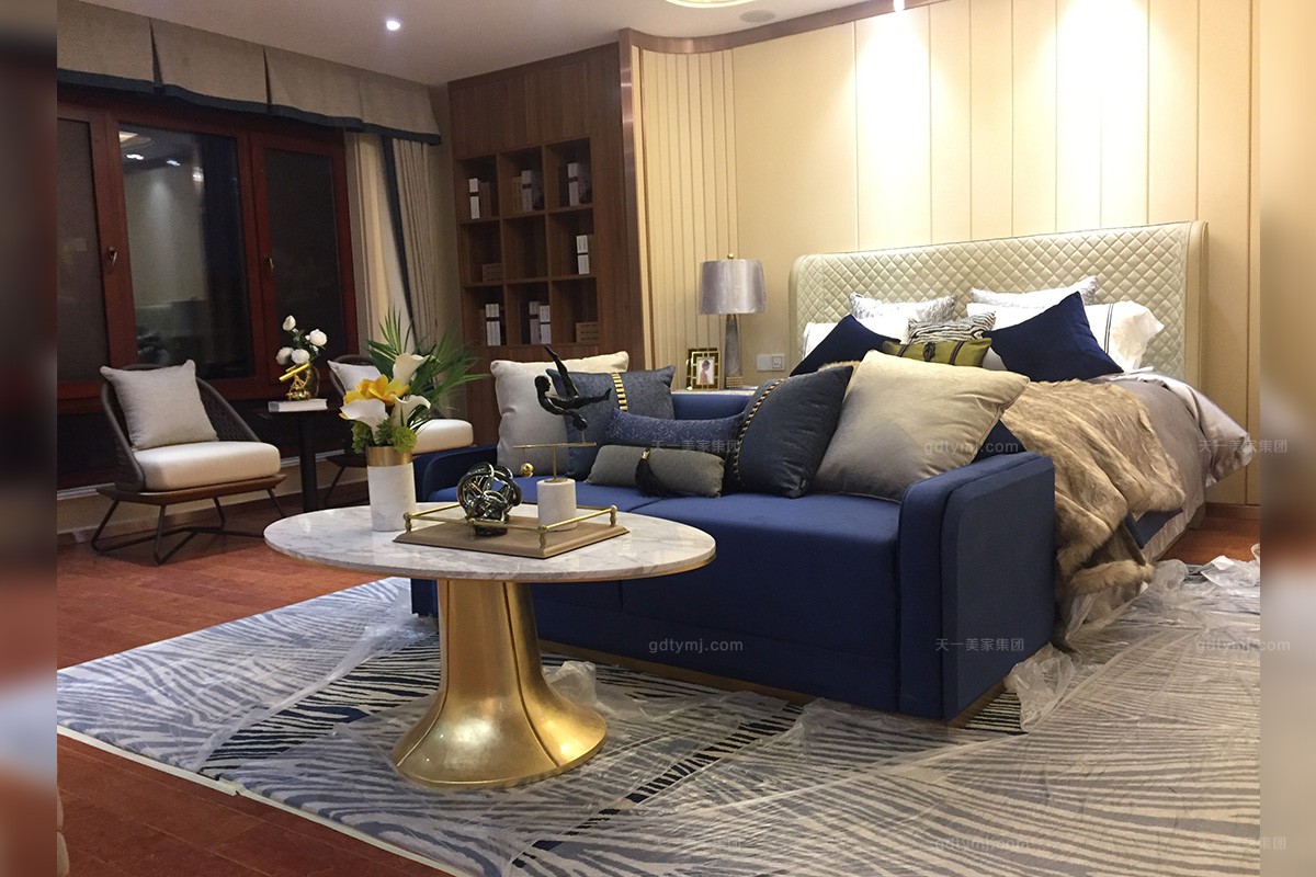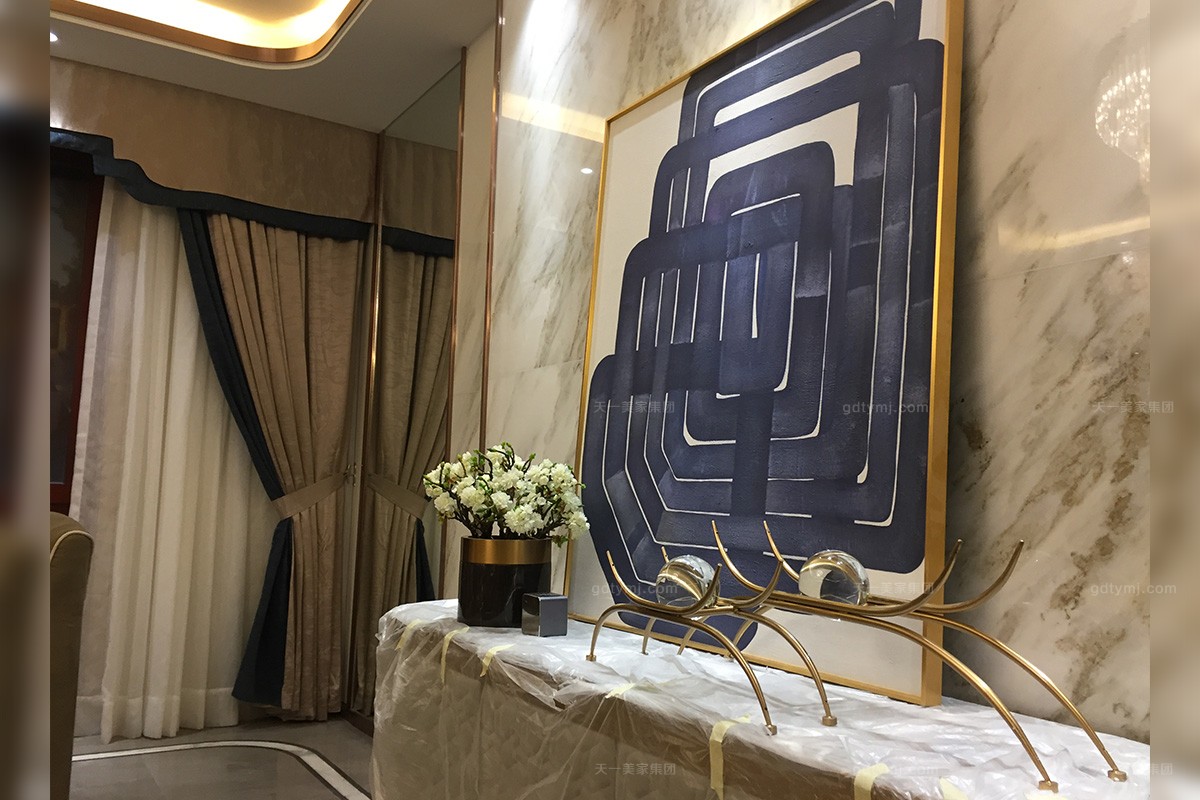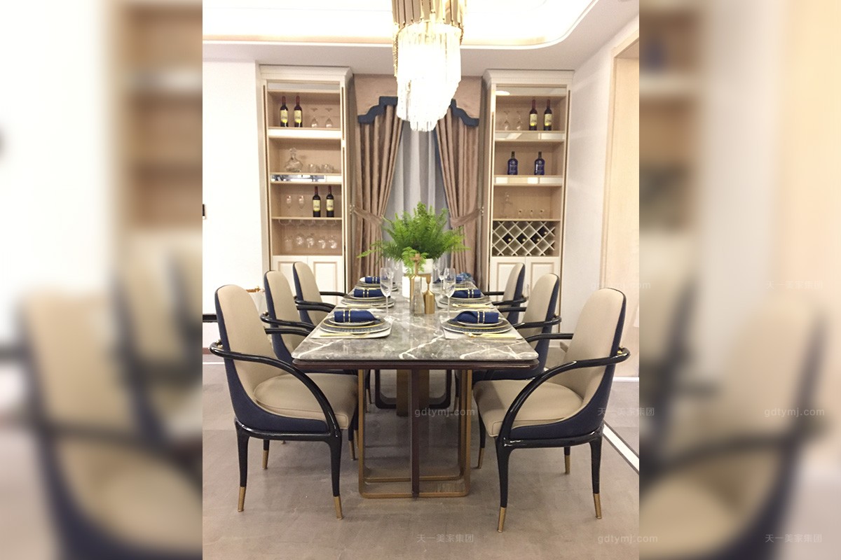 項目介紹:本案根據客人提供的要有現代輕奢感格調的想法,天一美家設計師結合時下流行的家具輕奢化趨勢,以后現代風格設計為主調,輔以現代時尚元素,使得家具產品風格呈現一種多變與多樣性,給人們帶來不一樣的時尚視覺沖擊。產品從設計到生產工藝,甚至每個細節,天一美家的工匠們精益求精,力求每件產品完成猶如如一件藝術品的到來。正因為如此,深受客戶的肯定。