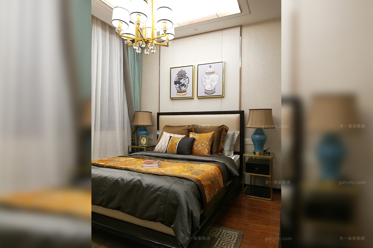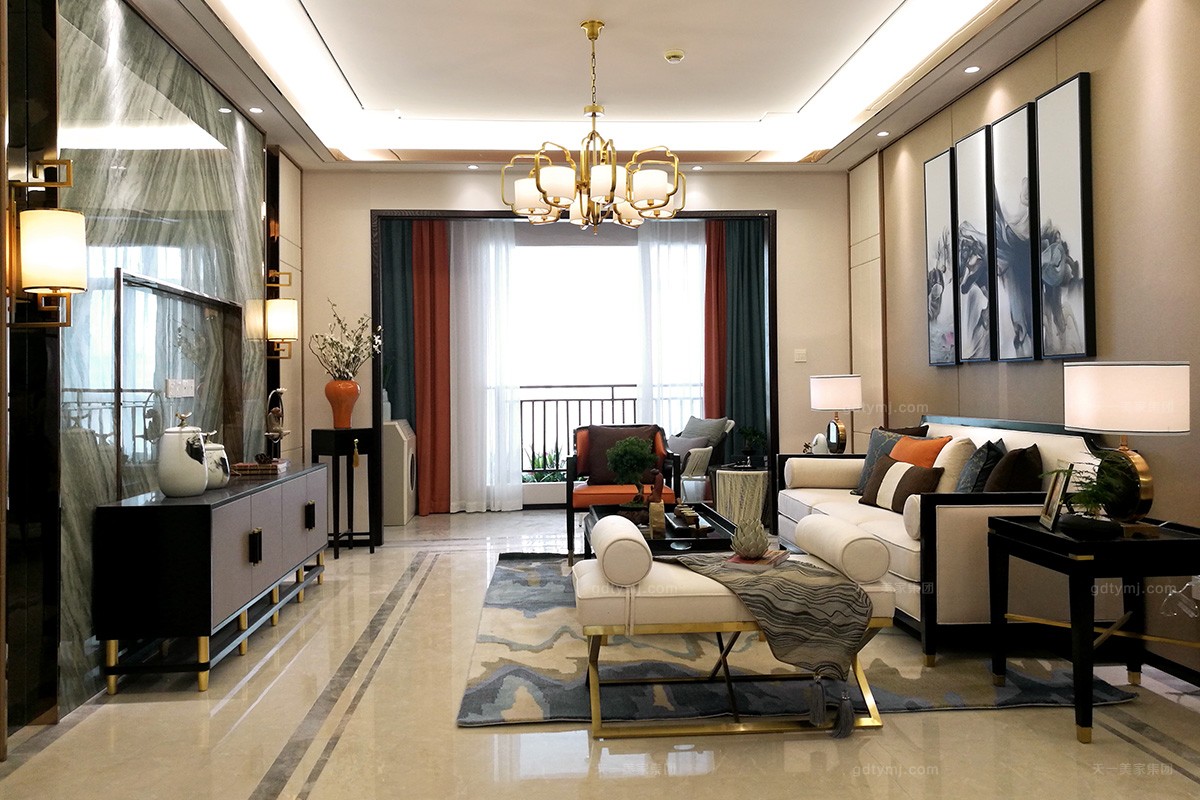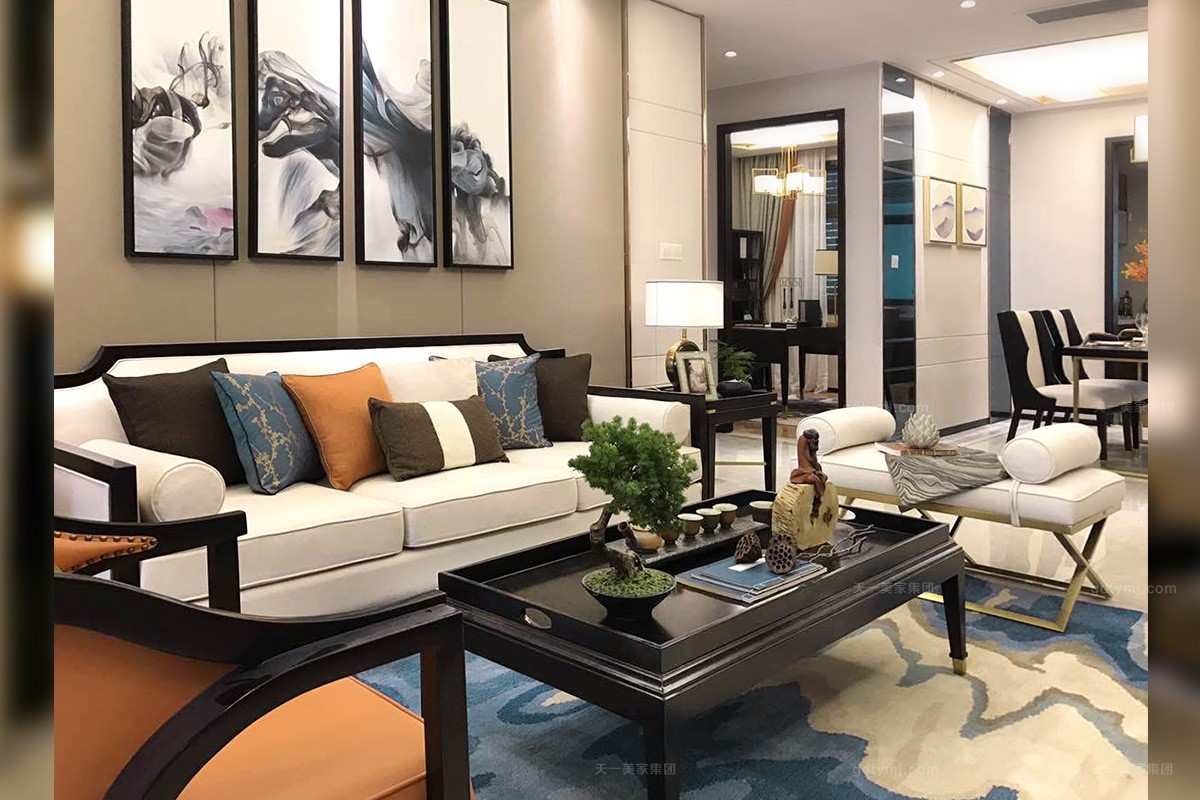 項目理念:本案是天一美家設計師們以新中式設計風格而打造的輕奢樣板間,此次新中式設計風格不僅保留了中式元素,還融合了現代時尚元素,既儒雅又現代,既顯得大氣磅礴,又溫馨簡約,深受客戶的肯定。