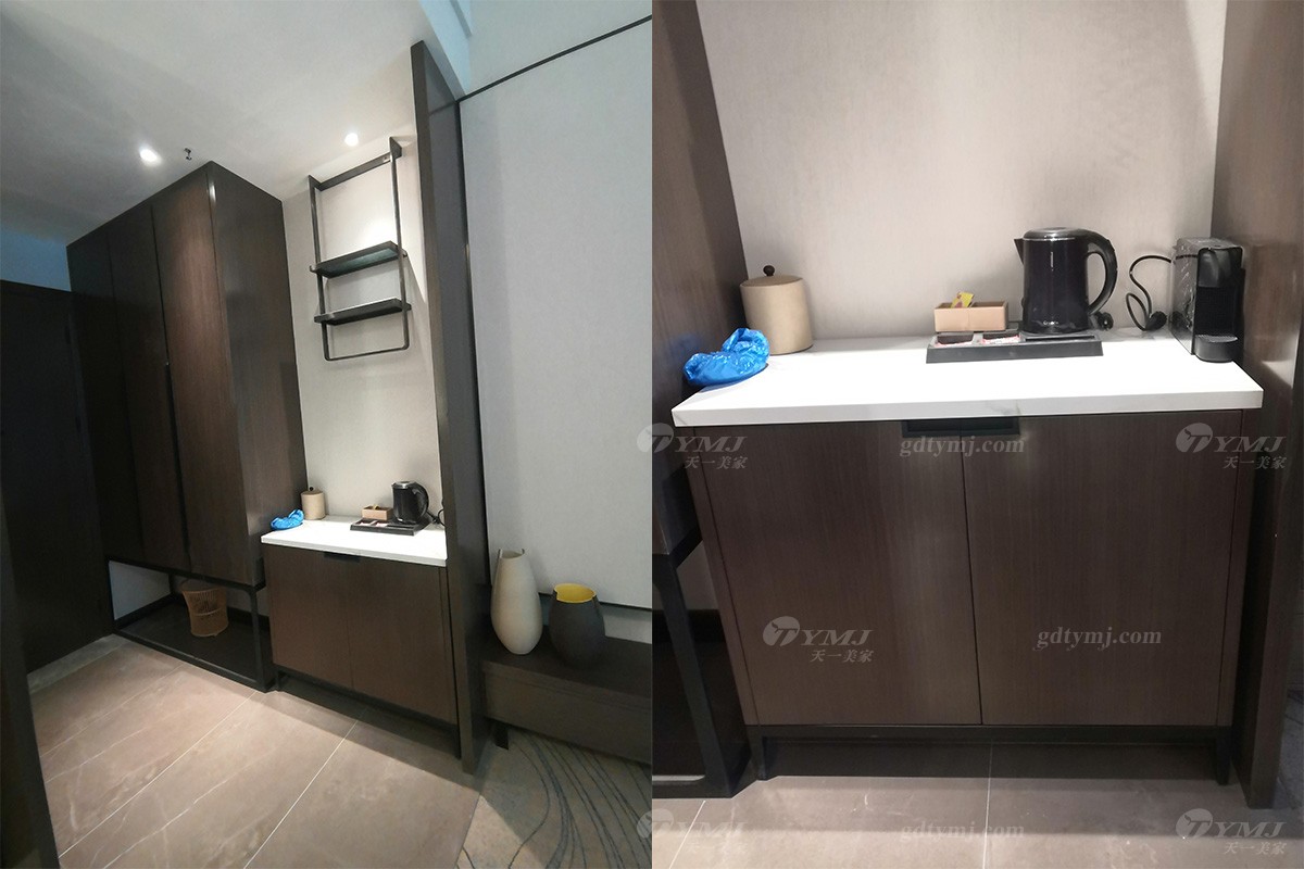 項目介紹:本案屬甘南地區星級酒店樣板間項目,整體設計理念為現代簡約風格,以深色、灰色為主基調色,以優質實木為主基材,配以大理石、金屬五金等輔材工藝,簡潔而不失檔次感,以獨特的燈飾、掛畫、綠植擺件等軟裝飾品作為點綴,時尚而不失品位,整個空間營造了一種舒適、恬靜的氛圍,深受甲方肯定。