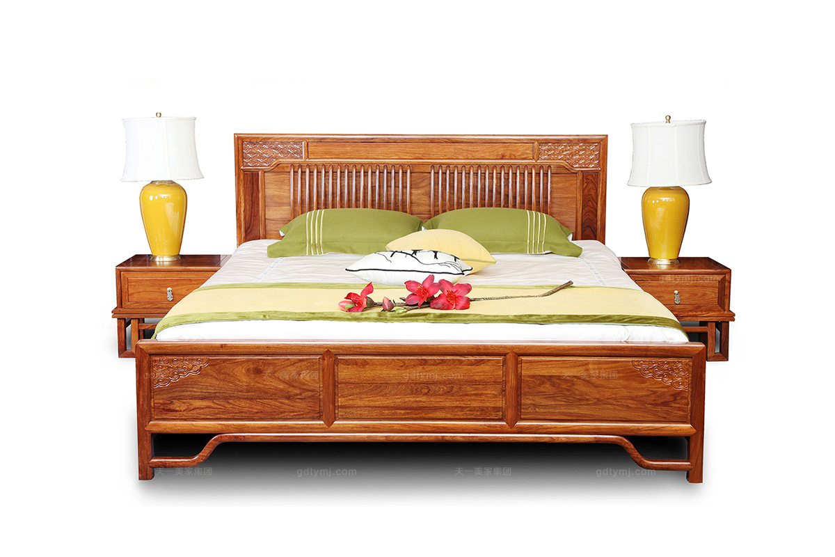 新中式別墅家具實木家具雙人床