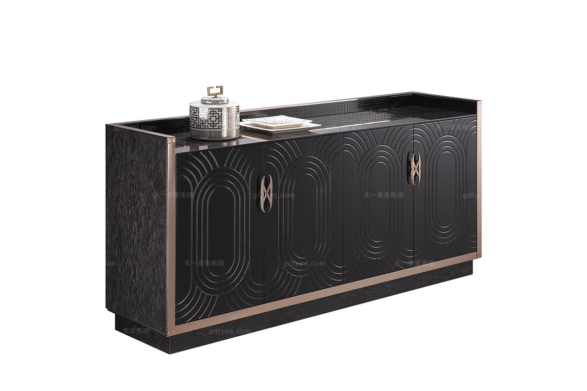 高端不銹鋼家具圖片后現代黑亮餐柜