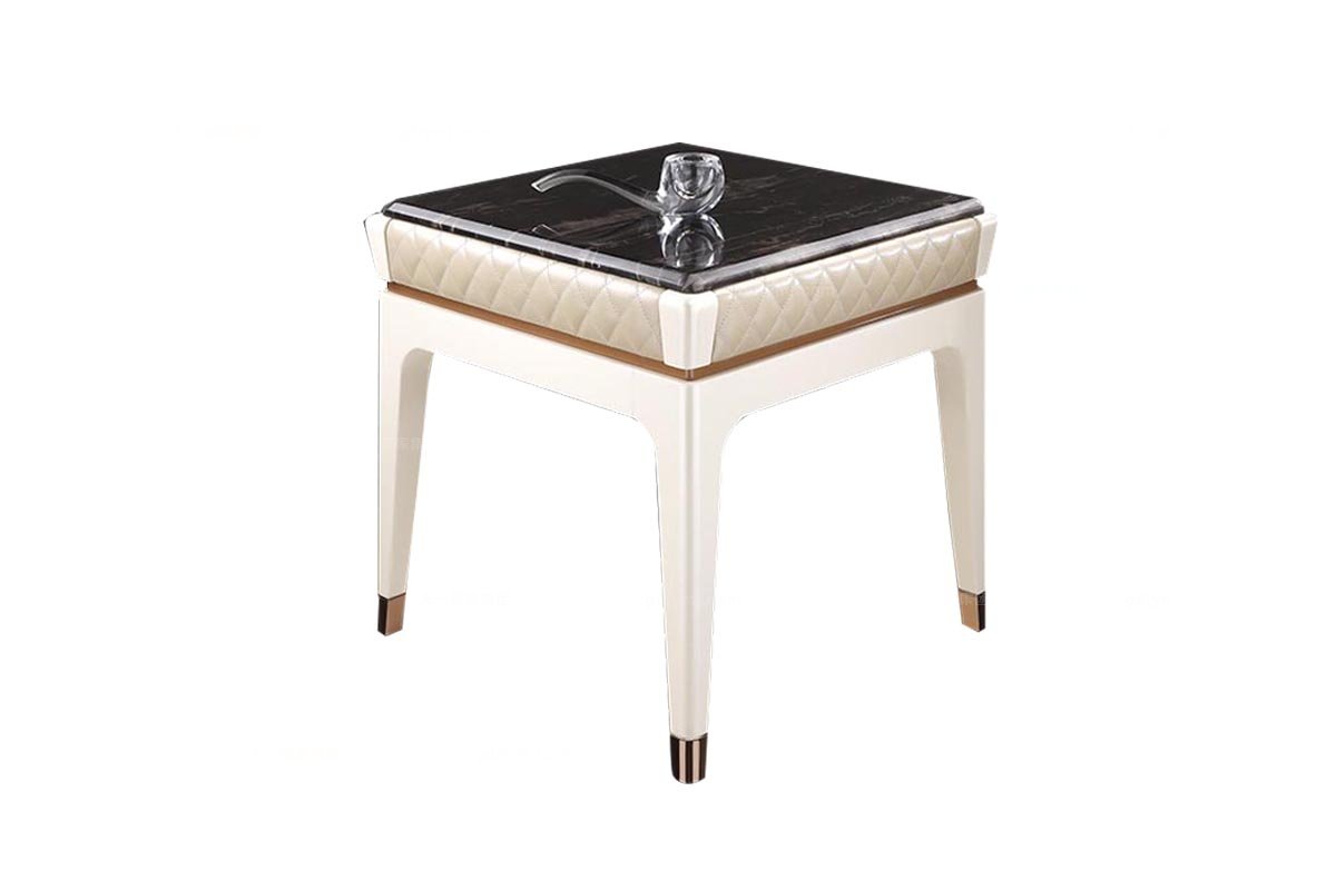 高端時尚酒店家具后現代香檳亮云白龍石面小方幾