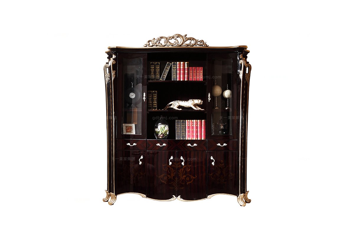 高端奢華新古典黑檀四門書柜