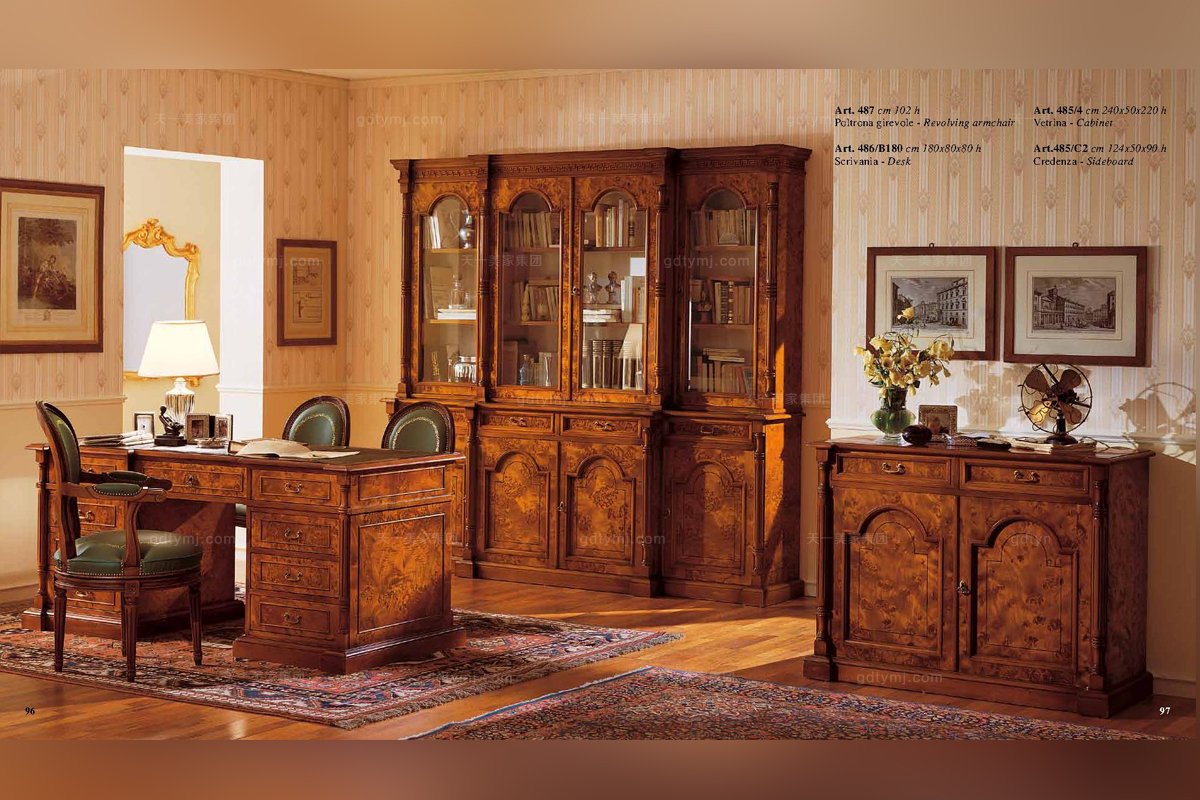 Minotti Luigi&Benigno歐式實木雕花櫻桃色木皮拼花書房系列
