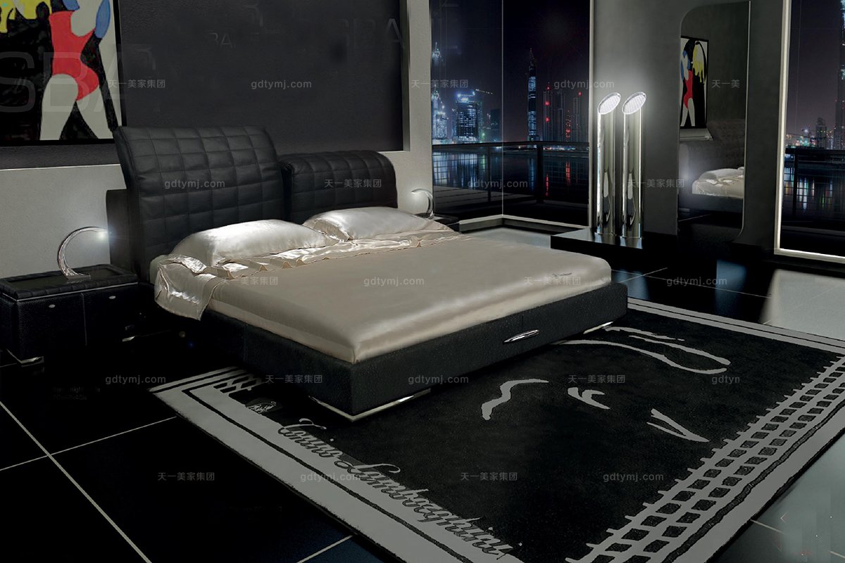 高端品牌現代風格意大利進口蘭博基尼系列黑色真皮雙人床