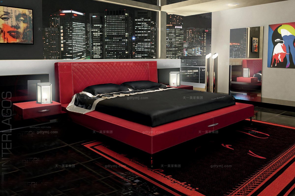 高端時尚現代風格意大利進口蘭博基尼系列紅色雙人床