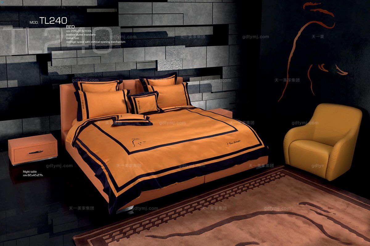 高端時尚現(xiàn)代意大利進(jìn)口蘭博基尼系列橙色雙人床