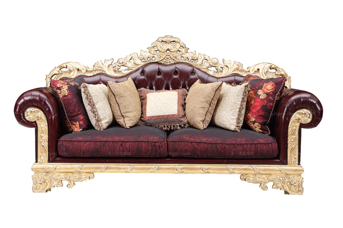 高端奢華會所家具雕花皮布三人沙發(fā)