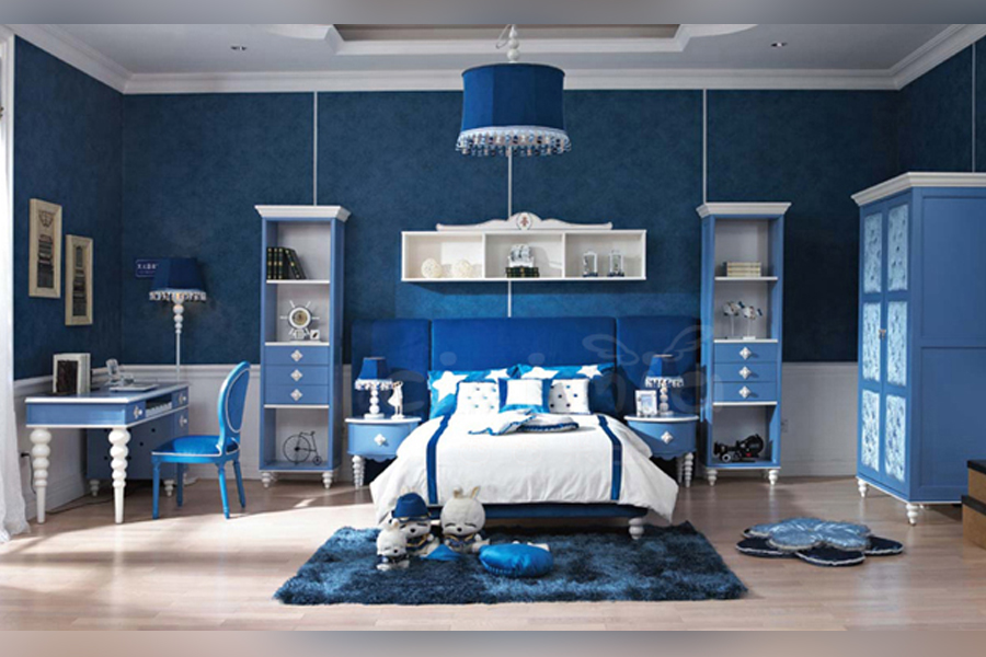 高端奢華兒童家具品牌藍色兒童臥室家具組合