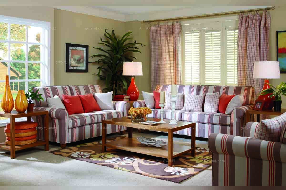 高端別墅家具美式田園風條文布藝沙發