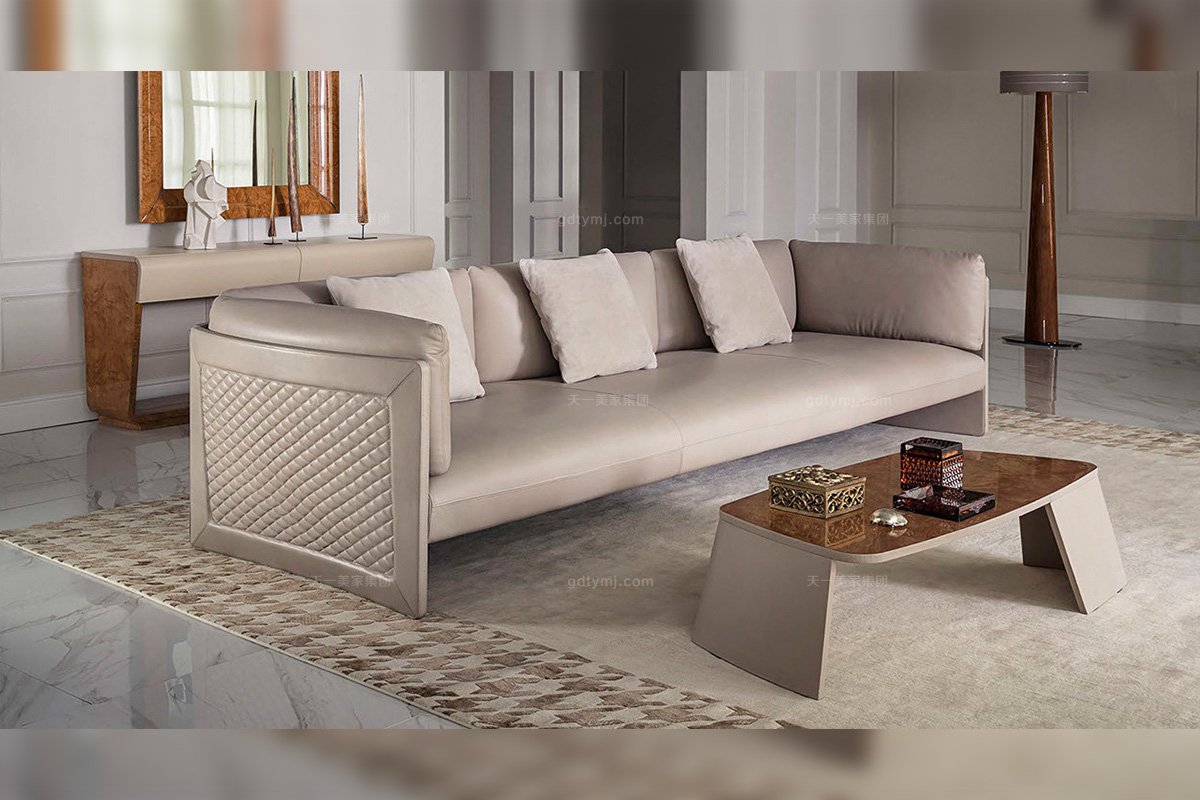 名貴奢華五星級酒店家具米黃色真皮客廳三人位沙發