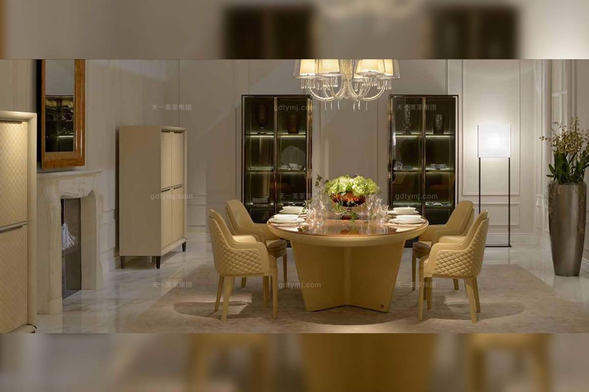 高端奢華別墅豪宅家具品牌餐廳家具后現代黃色真皮餐桌+餐椅組合