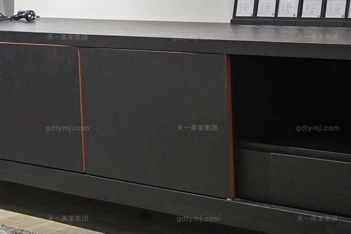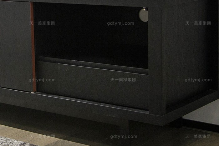 意大利現(xiàn)代極簡(jiǎn)約風(fēng)格家具客廳高端黑橡色實(shí)木電視柜