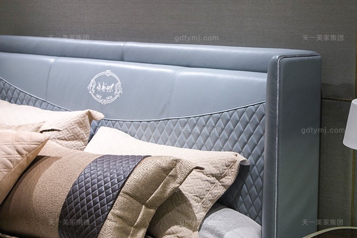 高端別墅家具品位輕奢家具臥室真皮藍色雙人床組合