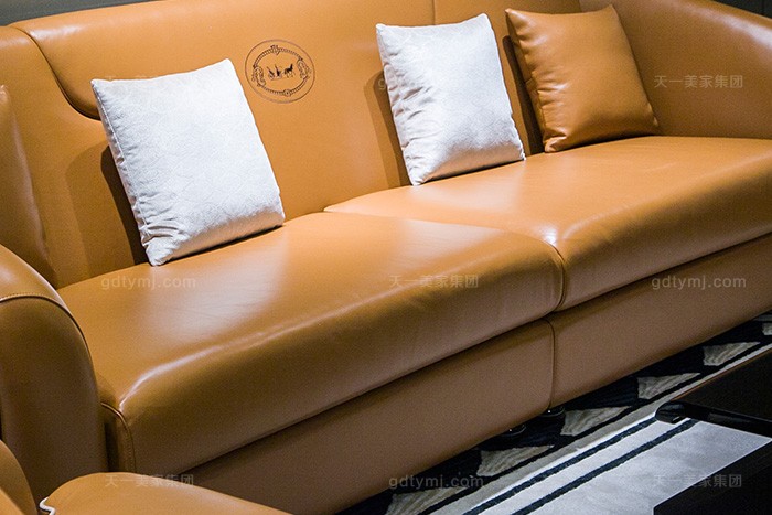 奢華別墅家具品牌輕奢后現(xiàn)代風(fēng)客廳愛(ài)馬仕橙真皮沙發(fā)組合