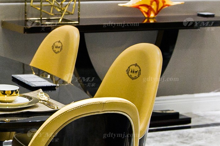 高端別墅輕奢后現代家具品牌餐廳實木真皮餐桌椅組合