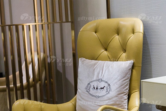 高端會所家具品牌售樓處家具后現代輕奢家具時尚米黃真皮休閑椅