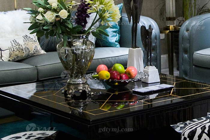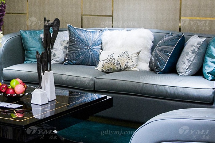 高端私家別墅家具品牌輕奢現代客廳家具時尚藍色真皮沙發組合