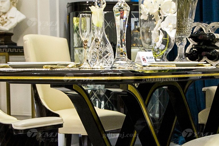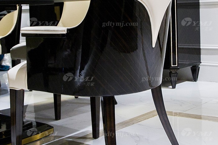 高端奢華會所別墅品牌輕奢現代餐廳家具黑檀超纖餐桌椅組合