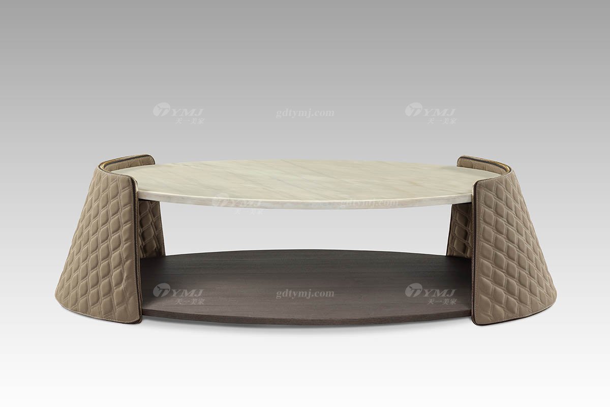 現代輕奢高端豪華家具高級石+咖色超纖橢圓幾