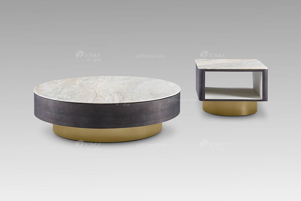 高端別墅現(xiàn)代輕奢家具高級(jí)大理石+灰橡色大圓幾