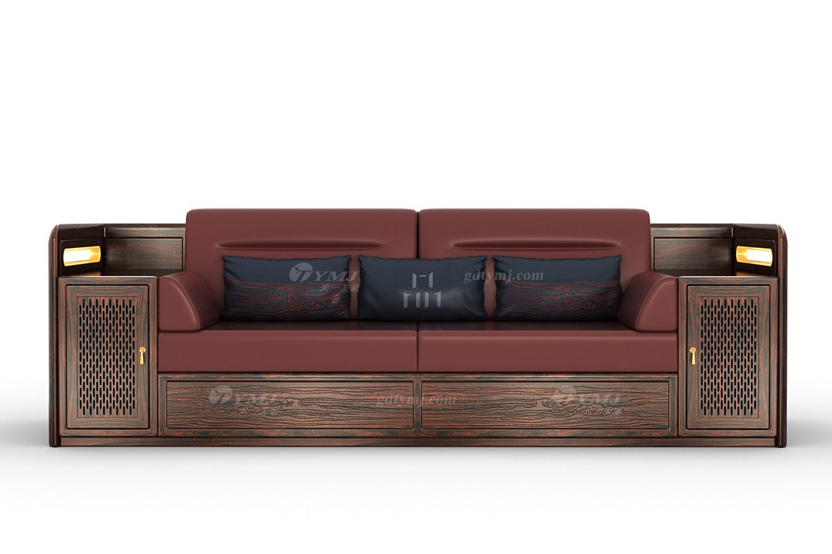 新中式輕奢時尚高端品牌家具黑酸枝實木三人位沙發