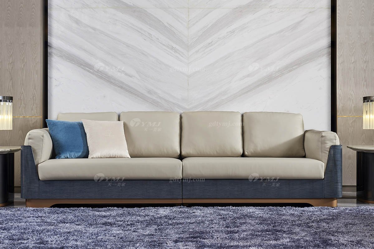 高端別墅豪宅家具星級酒店家具品牌后現(xiàn)代輕奢風(fēng)格客廳真皮+金屬底四位沙發(fā)
