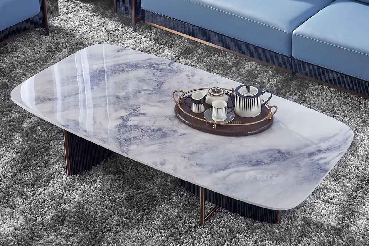 后現代輕奢風格家具高端會所別墅品牌家具時尚大理石面+金屬茶幾