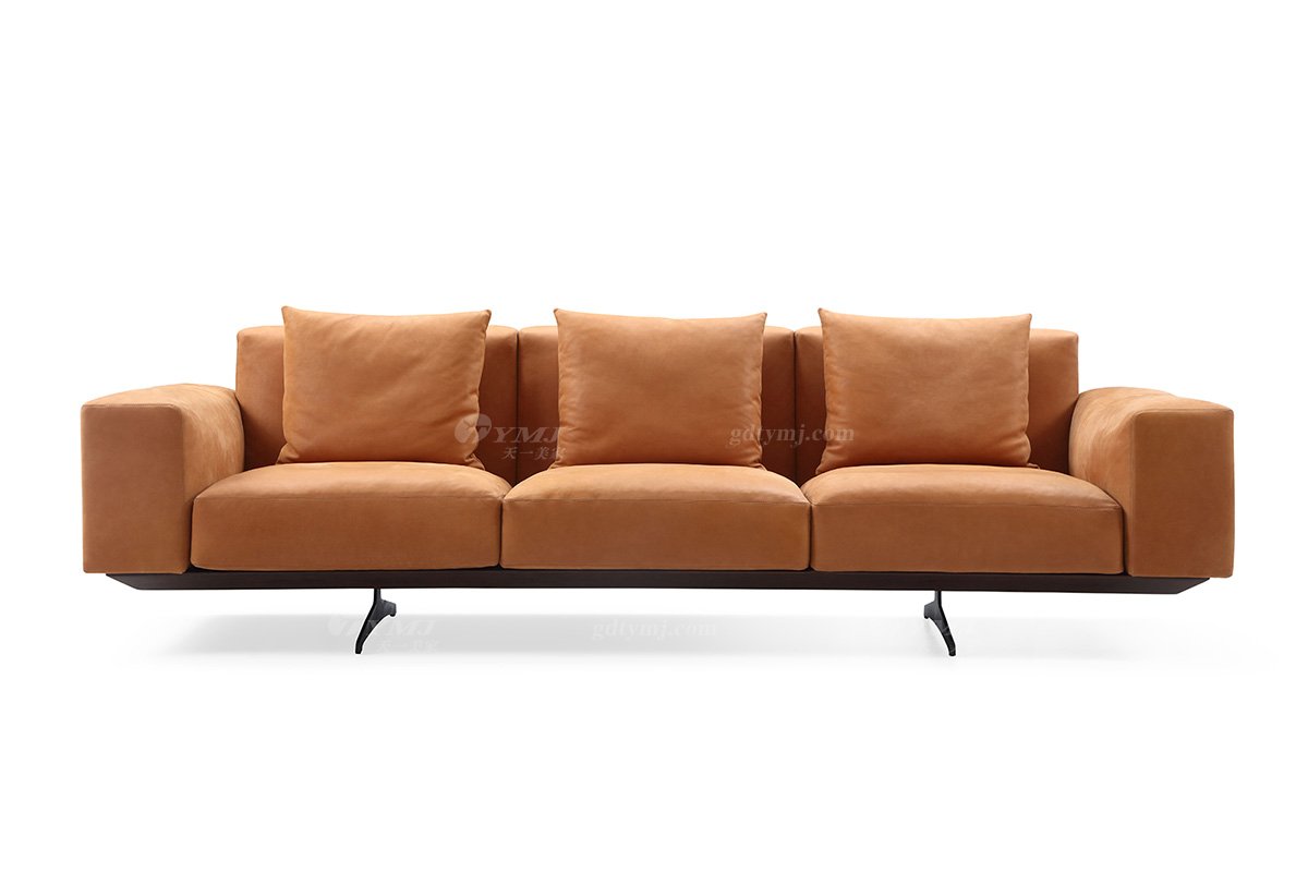 極簡風格意式品牌高端別墅會所家具現代簡約設計橙色四位沙發