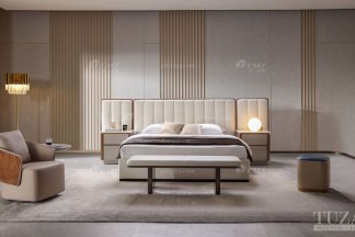 意式極簡風格家具高端別墅會所大宅時尚簡約淺灰色床頭柜